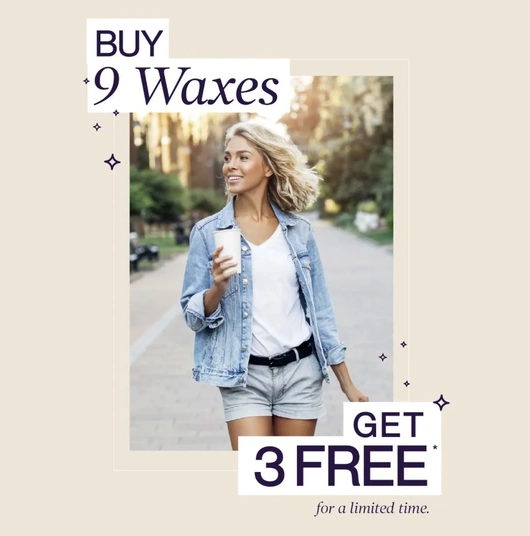 For a limited time, buy 9 waxes and get 3 FREE — because self-care should always feel this rewarding.